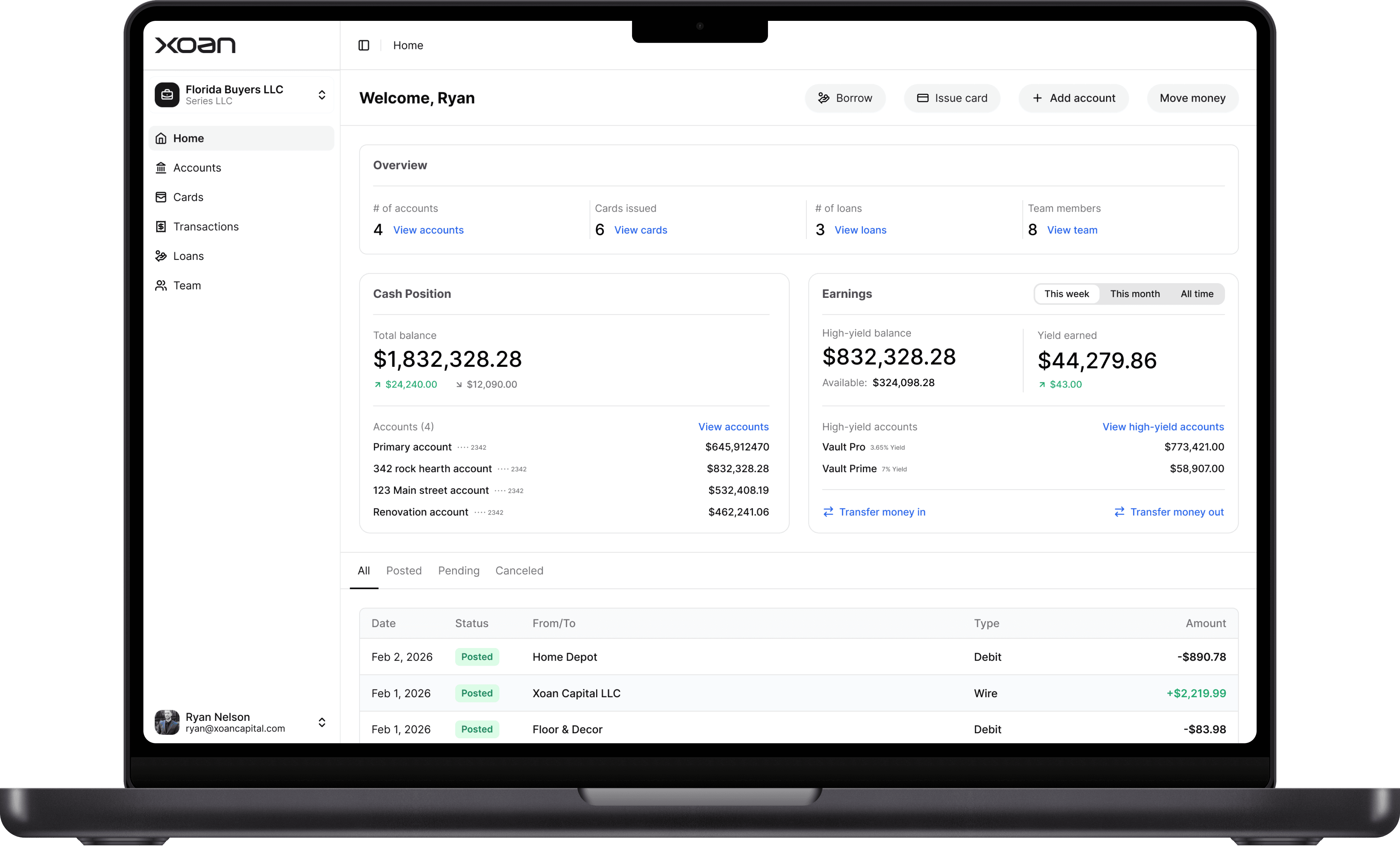 “We created Xoan because real estate investors deserve a financial system built for how they operate. Xoan unifies cash storage, financing, and spend management so investors can move faster”