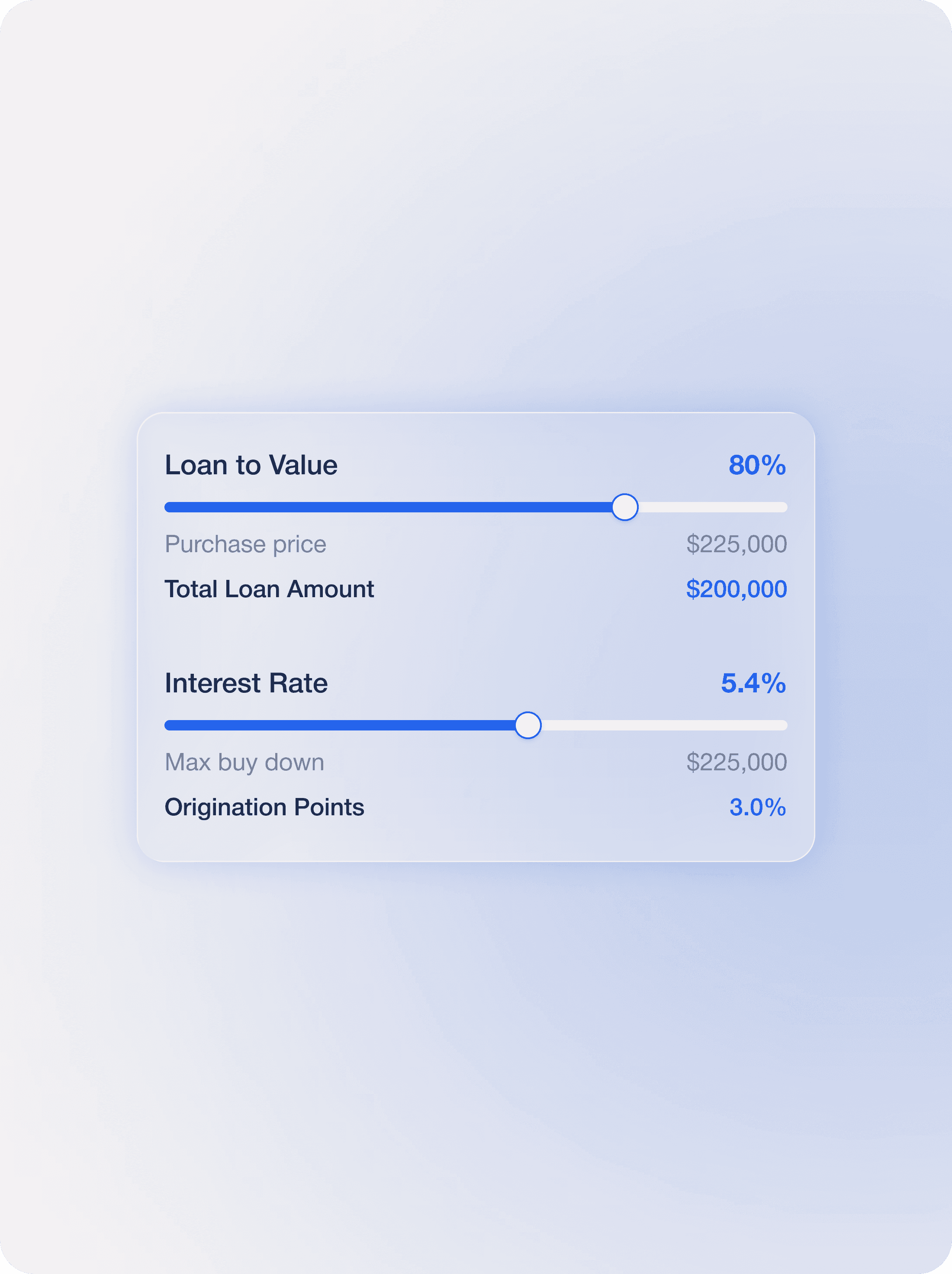 Because we already understand your entity and profile, you can get terms on a new deal in less tha a minute. Enter a few deal-specific inputs and receive terms that you can close with.