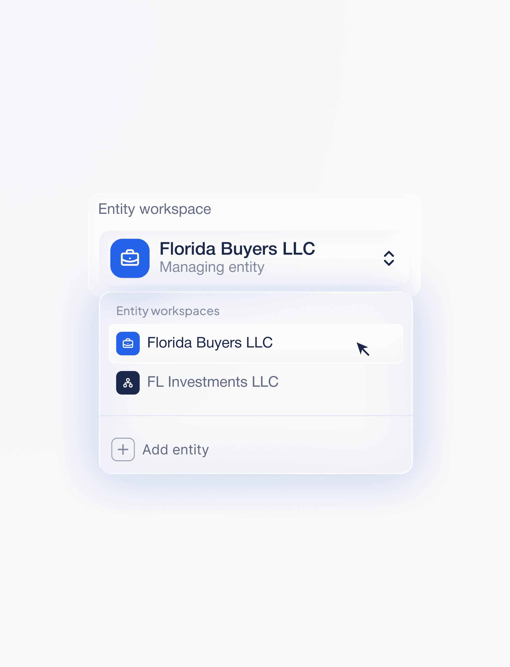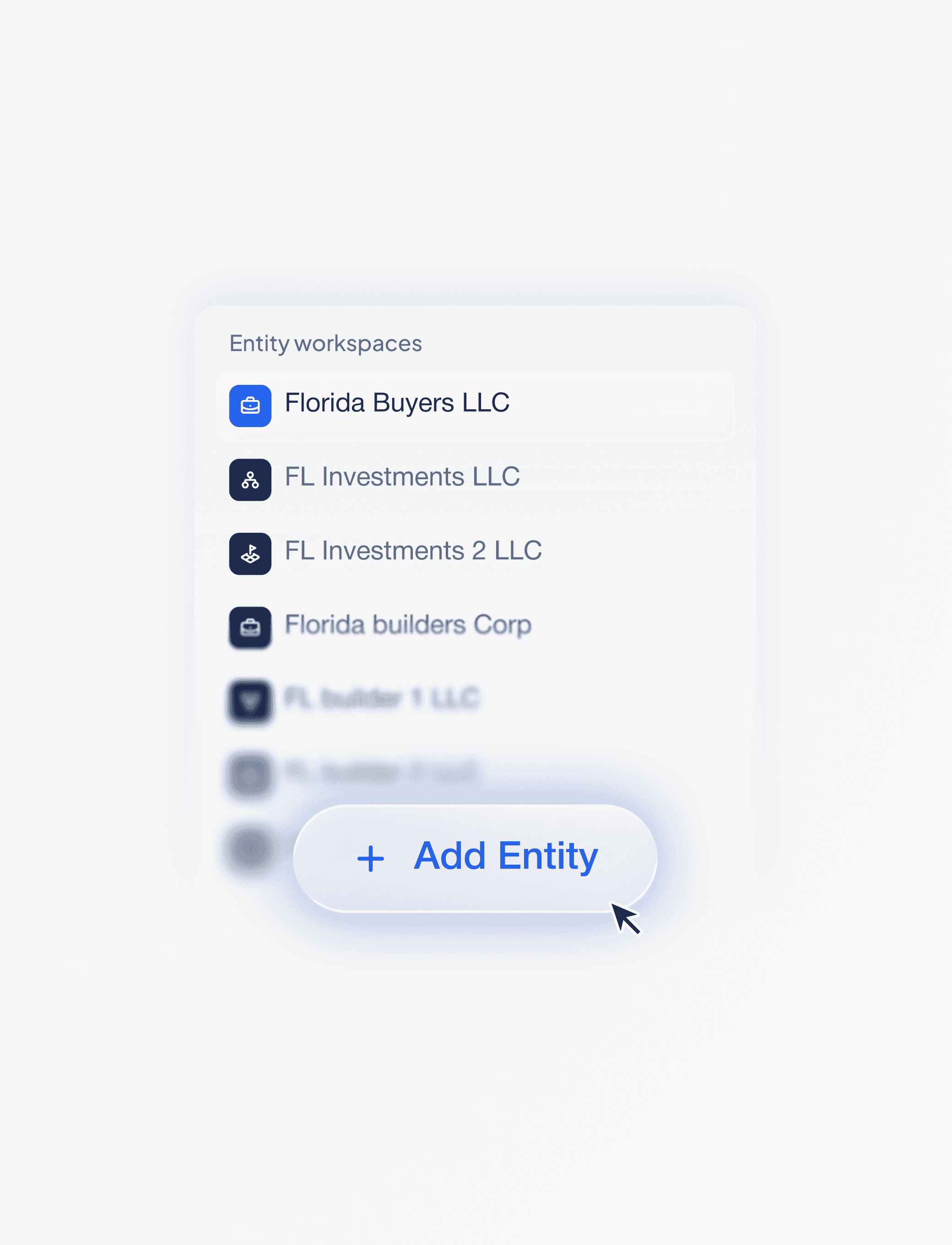 Switch between entities instantly to manage finances, spending, loans, and activity for that specific LLC or property. When you are inside an entity, everything you see belongs only to that business.